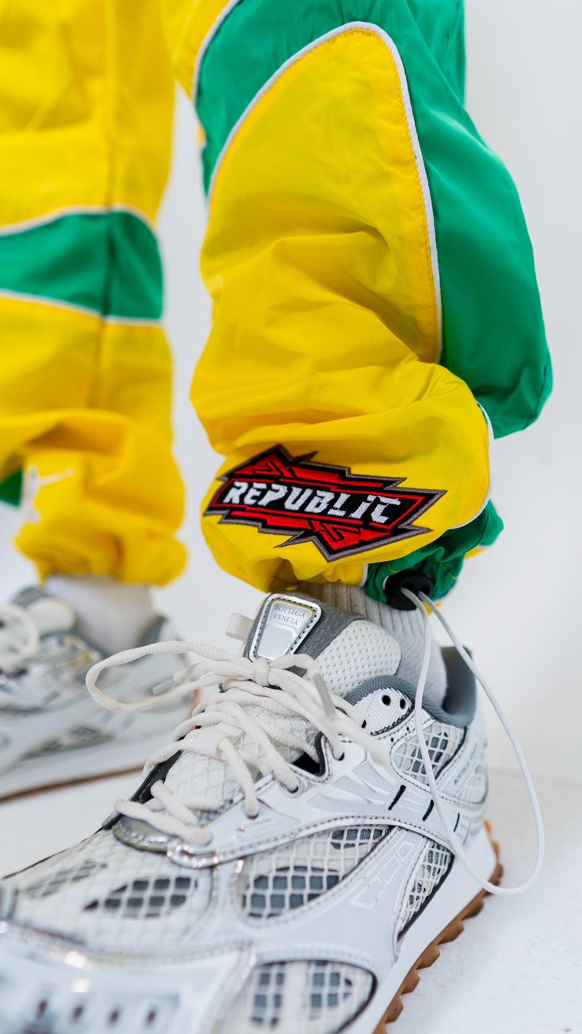 Crafted from the same advanced tech material, the Motorsport Pants balance structure with utility. Detailed embroidery stitching runs along the seams, while multiple hidden pockets enhance function without compromising the sleek design. The dual-tone color merge gives the pants a refined yet athletic aesthetic, completing a set that moves effortlessly between street and statement.